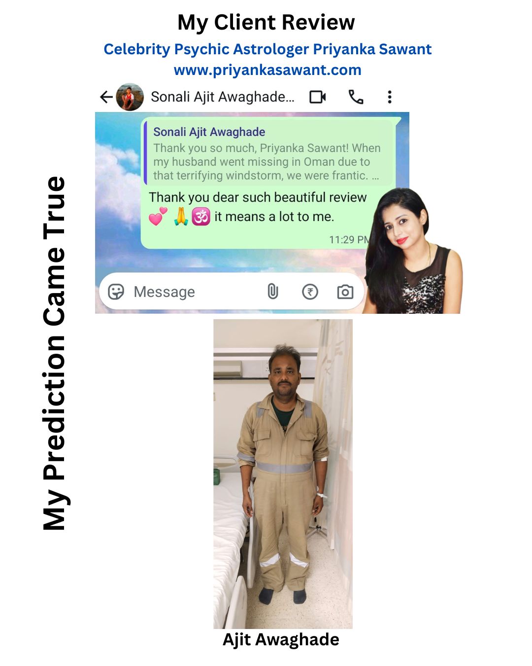 Sonali brother Madhav took consulted me to find out whether ajit was alive or not, through my psychic reading when i saw that ajit is alive, though he and his colleagues had only 3 days left to survive without help.